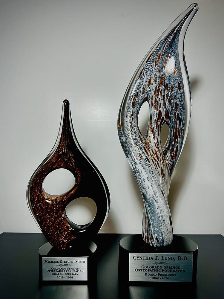 Making beautiful things to commemorate your beautiful moments drives us here and C&A. Whether it’s a plaque or an engraved piece of crystal, or whether you need custom trophies for your car show or a custom-engraved gun box for a retirement gift, we’ve got you covered. We can make something as simple as name tags, and something as complex as a triple-layered trophy with a Halloween theme (that even lights up!)
