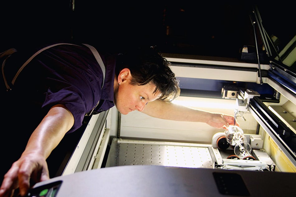 It’s Jenna’s artistry that has brought us all together today. They began engraving here at C&A over fifteen years ago, and loved it so much that they bought the business in 2022. Jenna uses machines, metal, wood, and “diamond dust” to make magic for C&A’s customers!